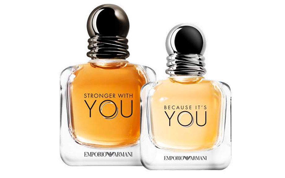 Emporio Armani lo sintetizza in due claim, che sono anche il nome dei suoi nuovi jus: Because it’s you, cinguetta lei. Stronger with you, esclama lui.